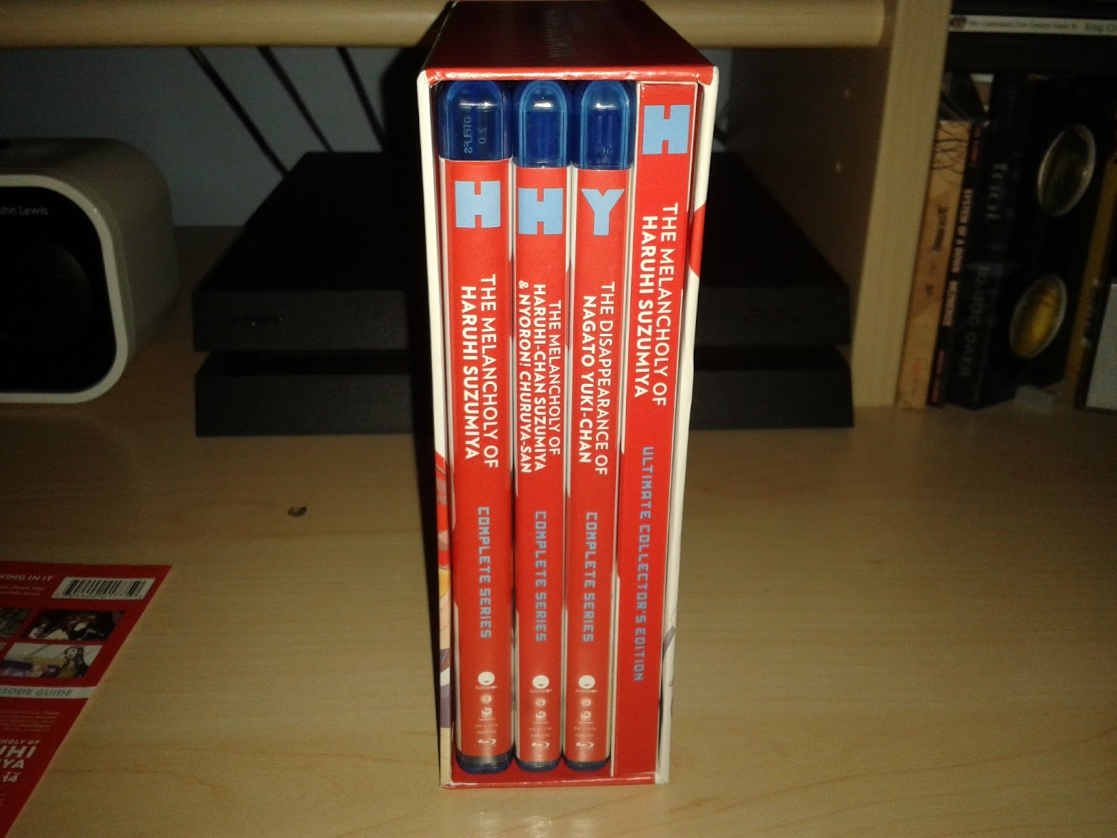 - All titles are on Blu-ray (with The Melancholy of Haruhi Suzumiya also including a DVD disc for extras)